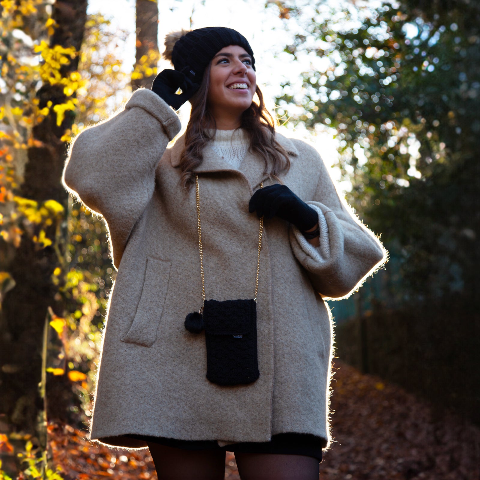 Borsa invernale Teddy con tracolla removibile per smartphone e accessori