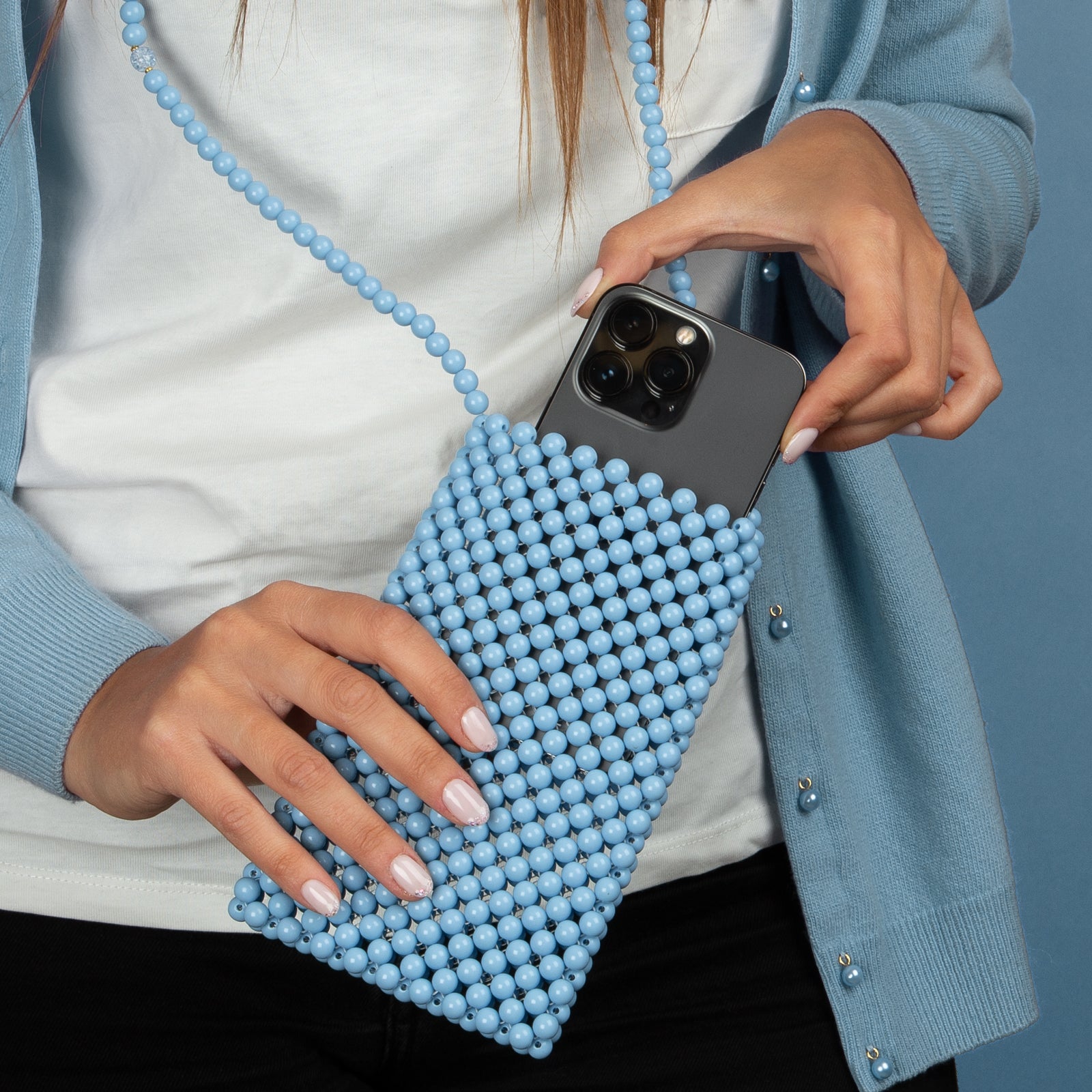Borsa porta smartphone universale con perline