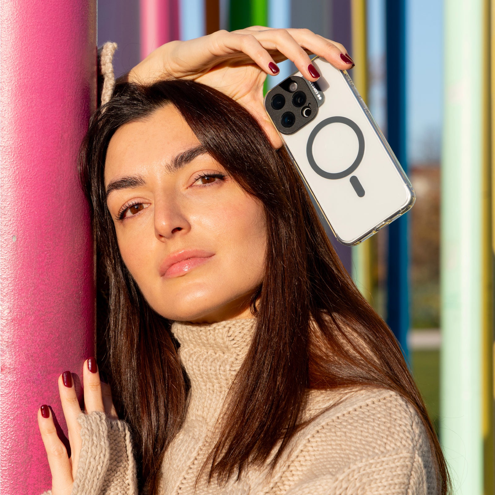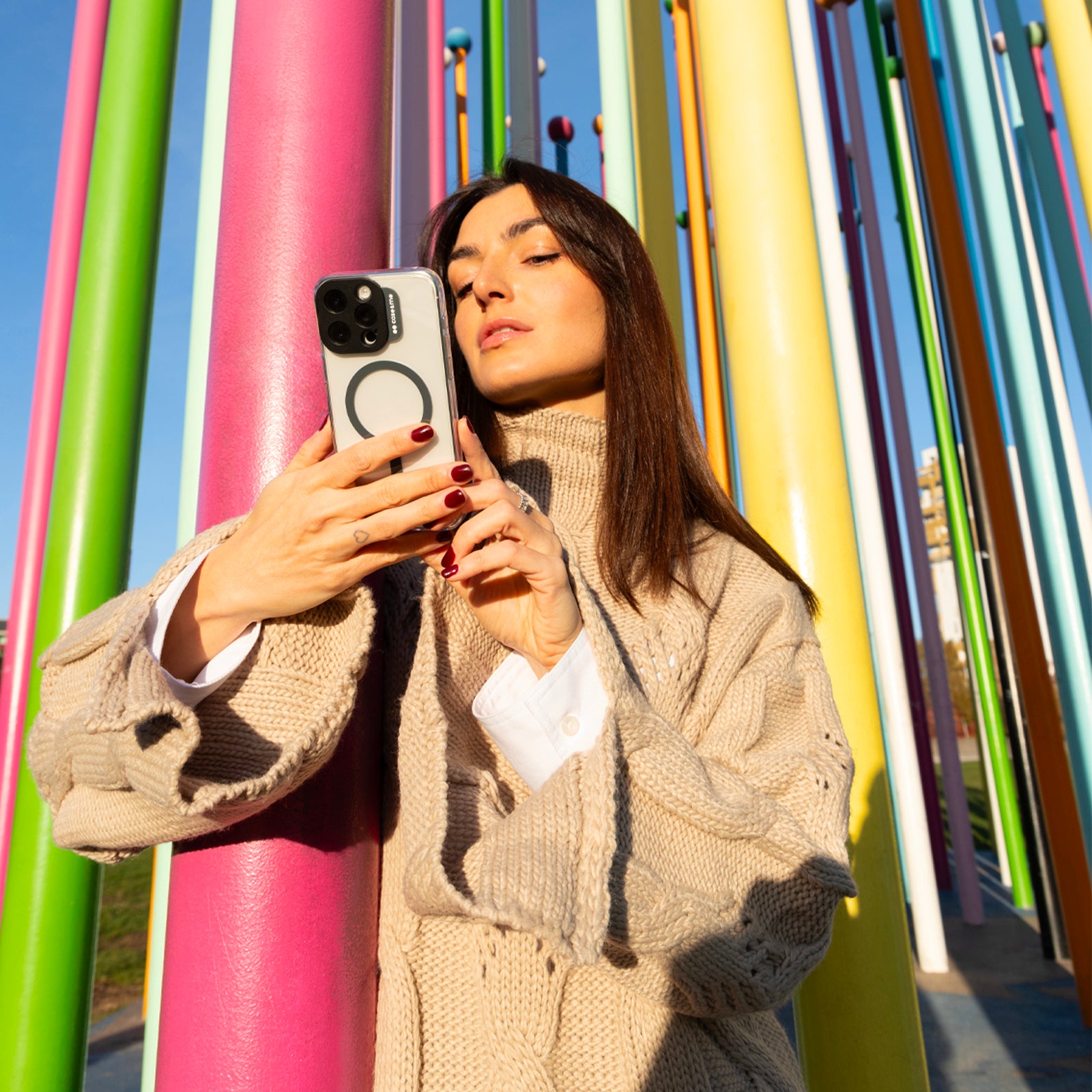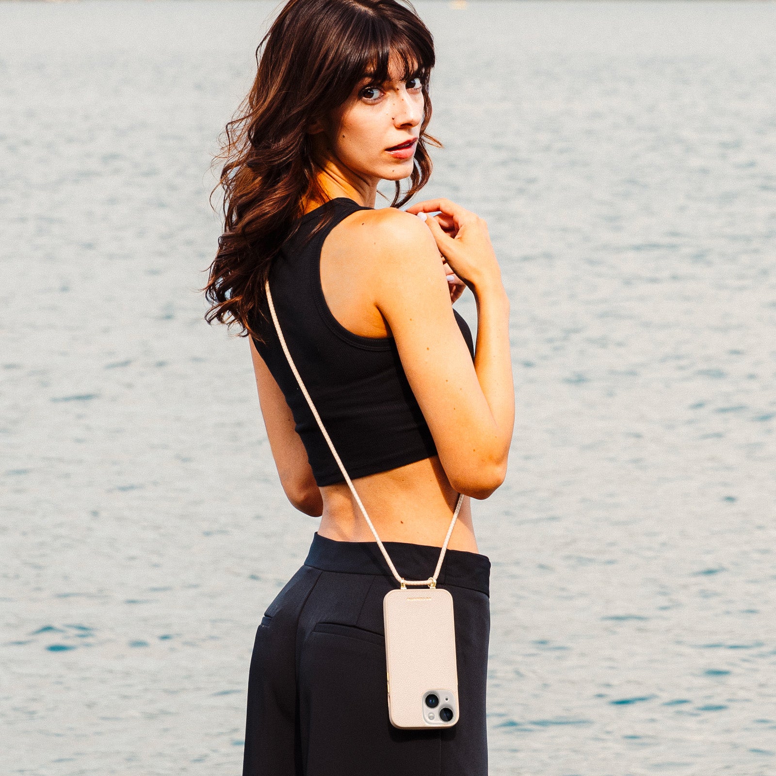 Cover con laccio da collo rimovibile per iPhone 15
