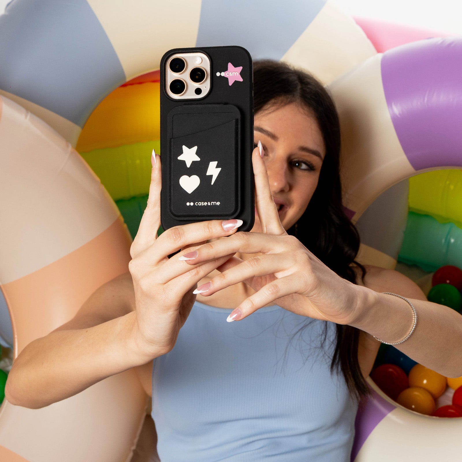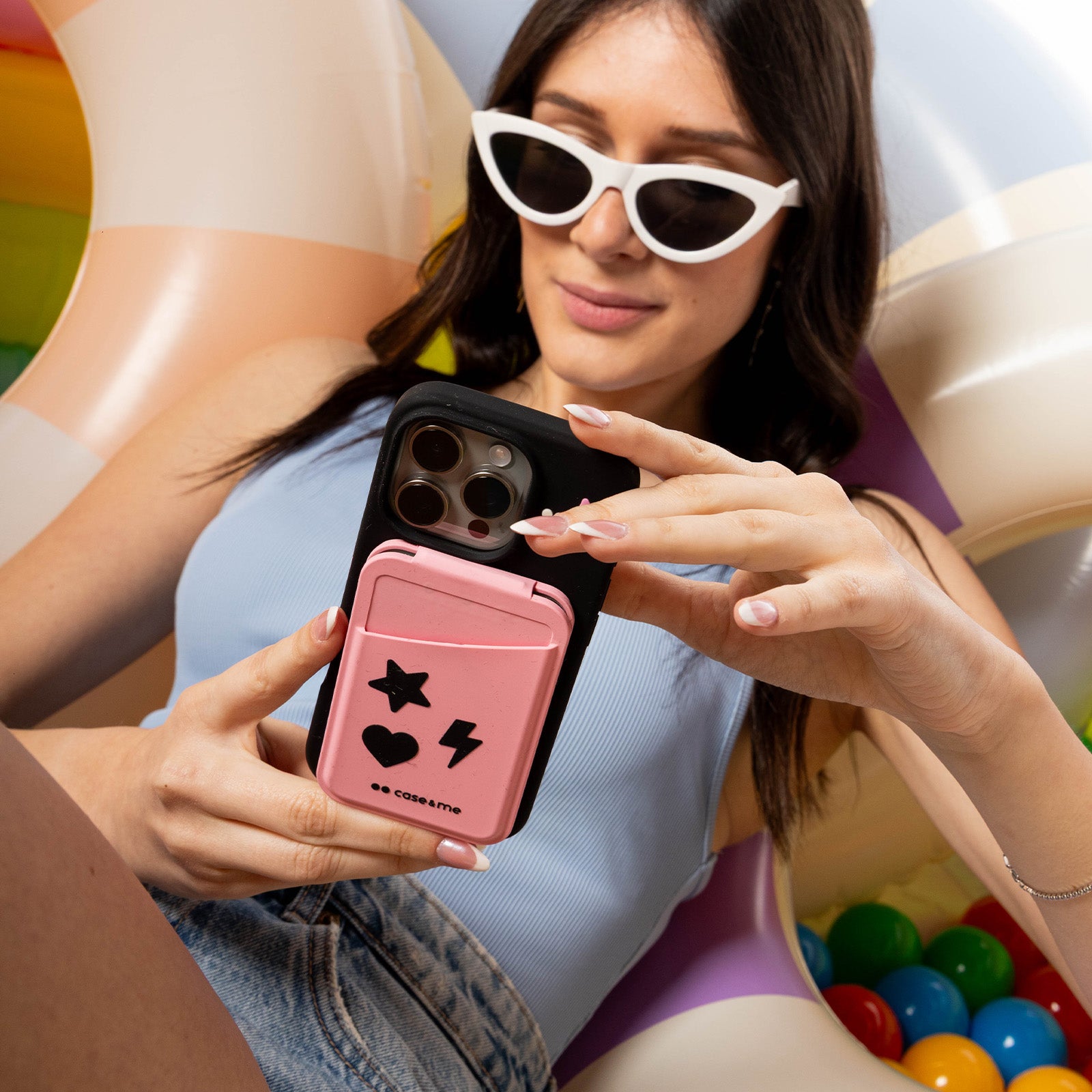 La colección Jelly de case&me ofrece coloridas bolsas de silicona para la muñeca. Estos bolsos para móvil también tienen mucho espacio para el maquillaje, las llaves y la cartera. Son muy prácticas de llevar gracias al cordón integrado. Llévatelas a la playa o a la piscina: son impermeables y resisten salpicaduras de agua o arena. Las fundas Jelly están dedicadas al iPhone 15, iPhone 15 Pro Max y iPhone 15 Pro. Están decoradas con bonitas flores en relieve y son extremadamente suaves al tacto. El iPhone descansa sobre un interior de microfibra que mima el cuerpo del smartphone de Apple. Incluso los botones laterales están protegidos: ¡la funda Jelly iPhone es la protección perfecta para el día a día! Las Jelly Beads son unos soportes de muñeca para el teléfono súper suaves y prácticamente antiestrés. Engánchalas a la funda de tu smartphone mediante el lazo integrado y lleva tu móvil como si fuera una pulsera.